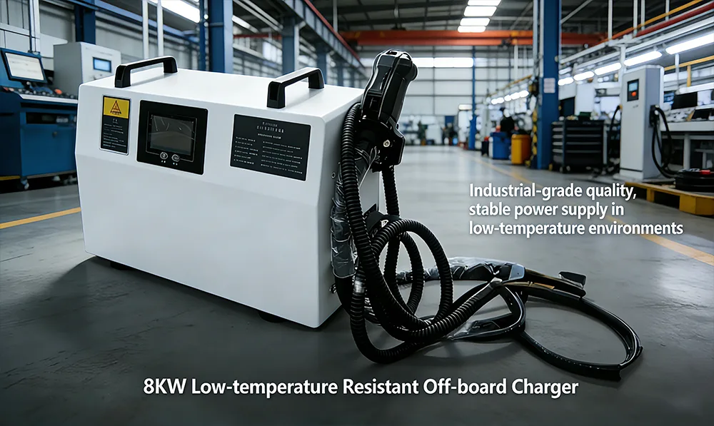 8KW Low-Temperature Off-Board Charger minangka piranti pangisi daya mandiri kanthi daya dhuwur sing dirancang khusus kanggo lingkungan suhu rendah. Fungsi inti yaiku ngowahi daya AC telung fase dadi daya DC sing stabil, kanthi efisien ngisi daya baterei peralatan industri kayata forklift listrik lan stacker.